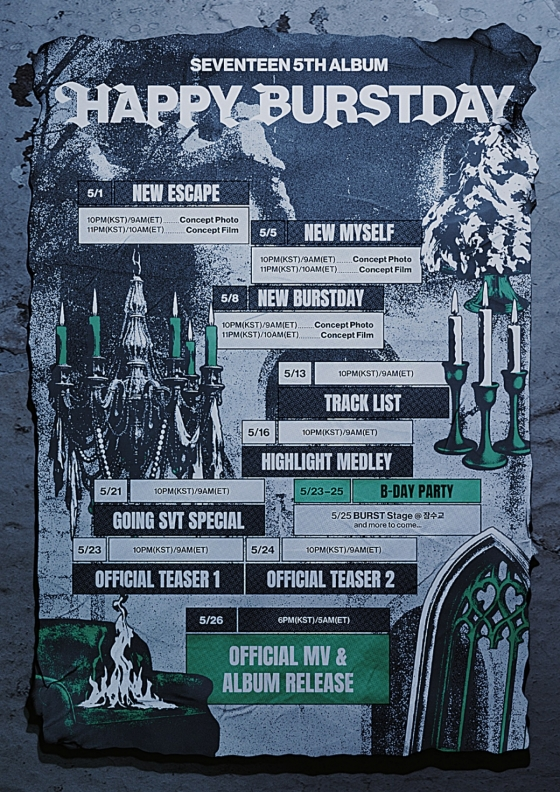 K-pop sensation SEVENTEEN is making a powerful return on May 26, just in time to mark their 10th anniversary. The group excited fans by unveiling the official promotion scheduler for their fifth full-length album, HAPPY BURSTDAY, through their official social media channels at 10 PM on April 29 KST.